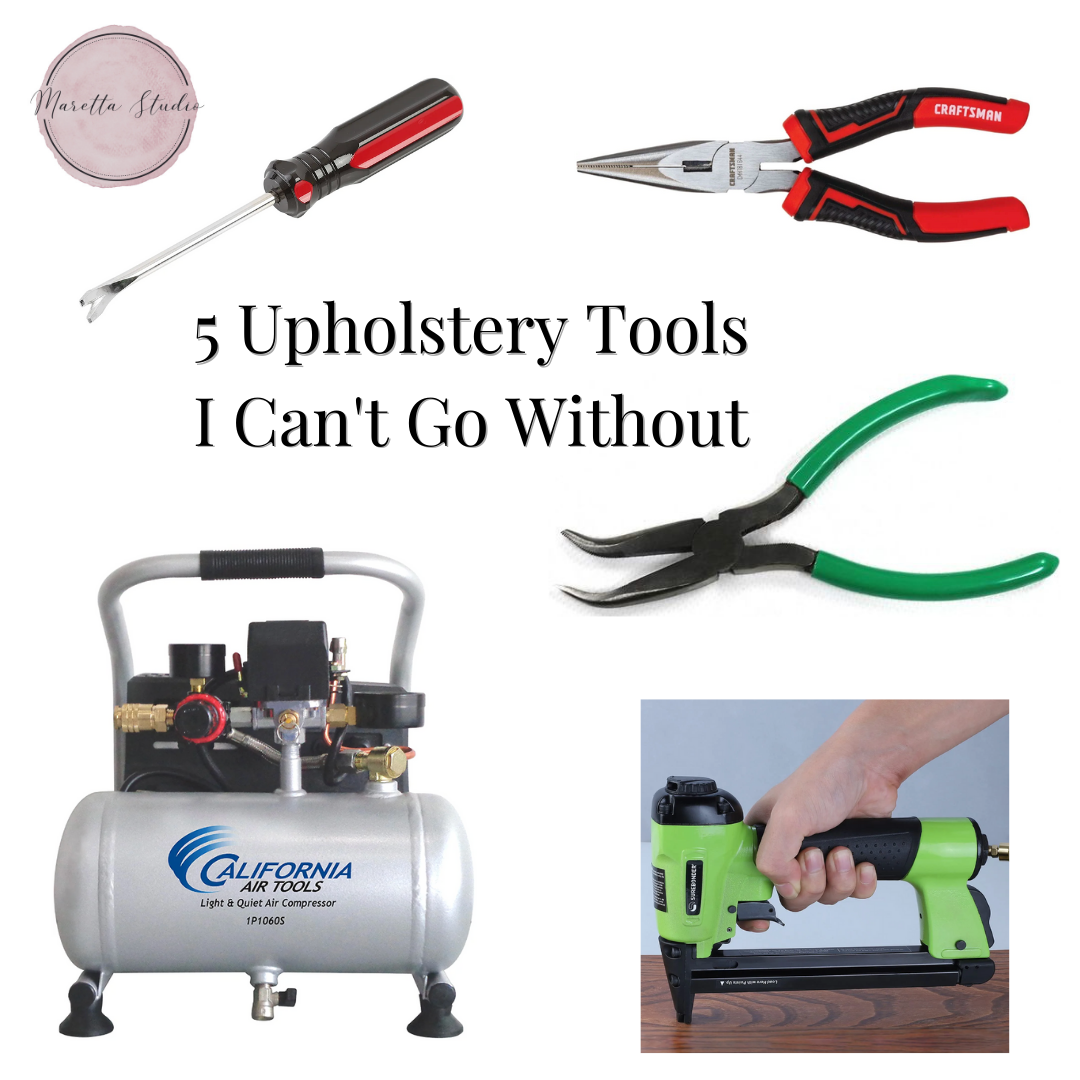 When working on any project, it is very important to me to have the right tools for the job. It makes the project go much more smoothly, and often gives a more professional finished result. Here is a roundup of 5 upholstery tools I cant go without.